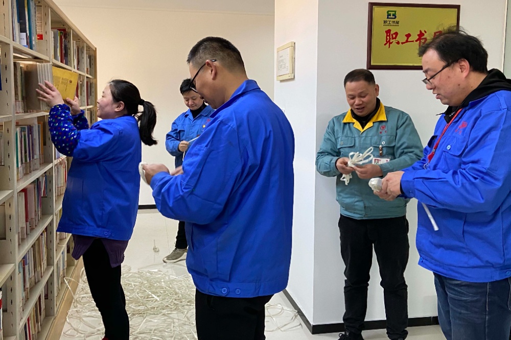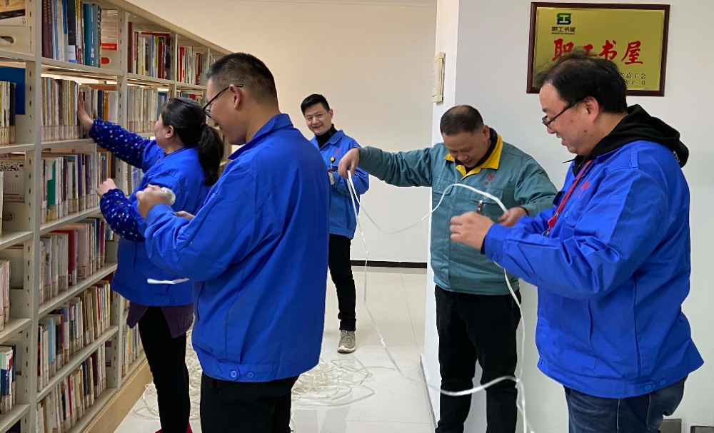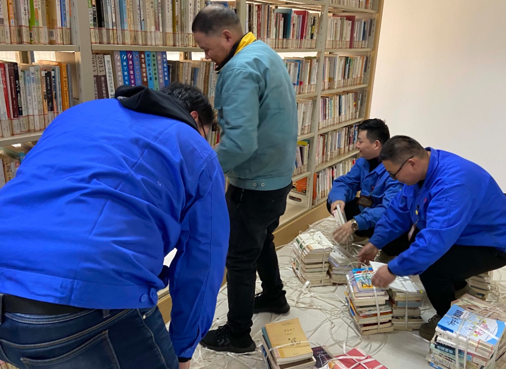 將2000冊圖書搬上書架并有序擺放是一項浩大的工作。2021年1月11日下午,幾位黨員志愿者發(fā)揮無私奉獻(xiàn)的志愿精神,來到我公司行政樓四樓的職工書屋,小心翼翼地把一摞一摞圖書搬上書架,并根據(jù)圖書的大小有序擺放整齊。在將圖書擺放整齊后,黨員志愿者們還將捆綁圖書的繩子進(jìn)行了整理。