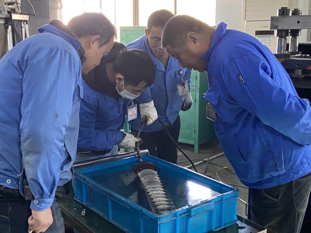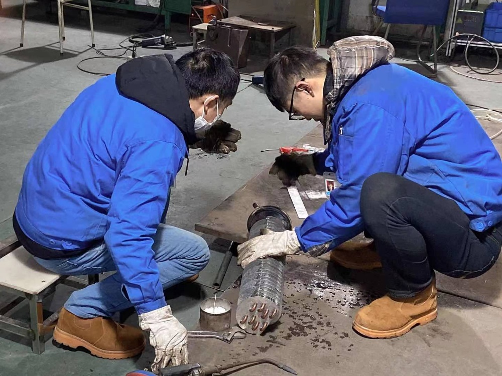 金工車間的電焊工小心翼翼地操作焊槍,在焊接好了裂縫后,還進(jìn)行壓力測試,確保裂縫已完全修復(fù)好。將維修好的零部件裝上沖壓設(shè)備后,經(jīng)過一段時間的試運(yùn)行,現(xiàn)這臺設(shè)備已恢復(fù)正常生產(chǎn)。